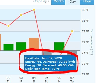 Posted here are some screen shots from the FPL website documenting the power production and savings created for the Merwitzers on Tuesday, January 7, 2019: